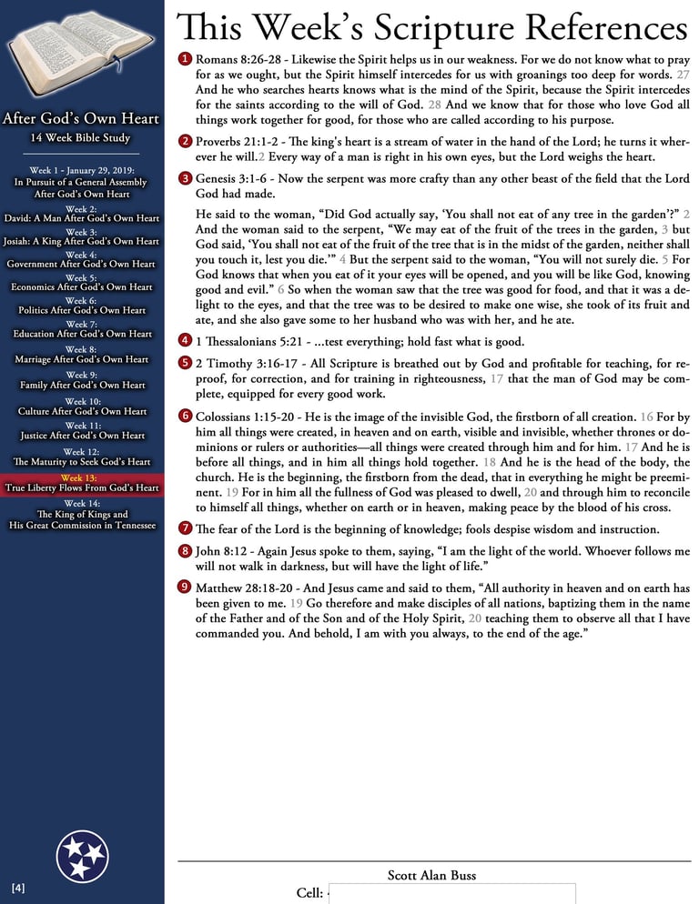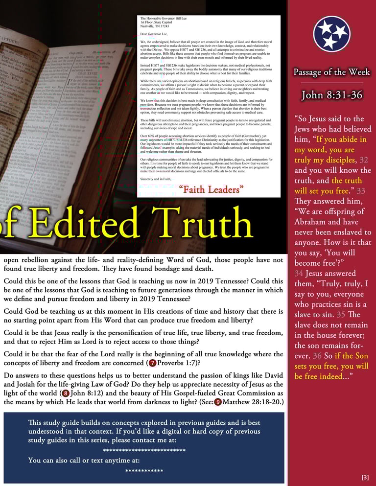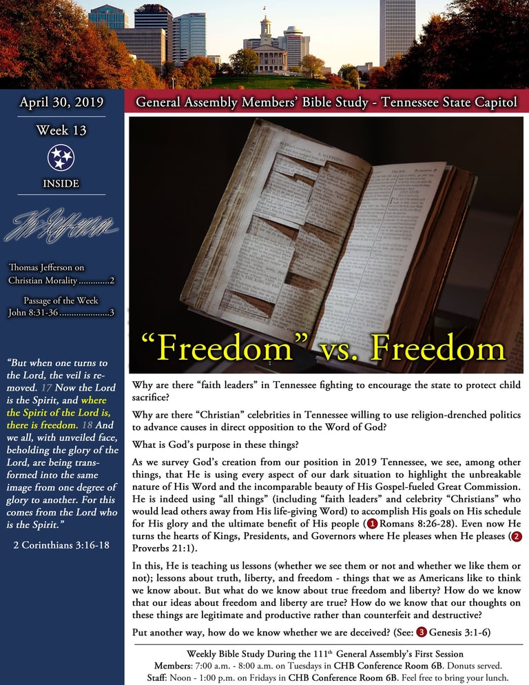 I was privileged to compose and lead a weekly Bible study for members of the Tennessee General Assembly in the years leading up to "the pandemic". I plan to post downloadable print-ready files for each of those studies here when I can. In the meantime, here is a sample instalment: