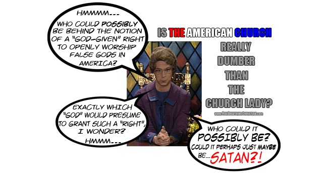 Imagine, if you will, a new episode of Church Chat in which The Church Lady considers the notion of “religious liberty” as currently adored, defended, and aggressively promoted by pretty much every System-enabled American “leader” and “expert”, including every national level talking head from the Pagan Political Right, the Pagan Political Left, and all Pagan Political points in between. (See: Note to ‘Merica: There is no “God-given right” to worship false gods. Repent accordingly.)